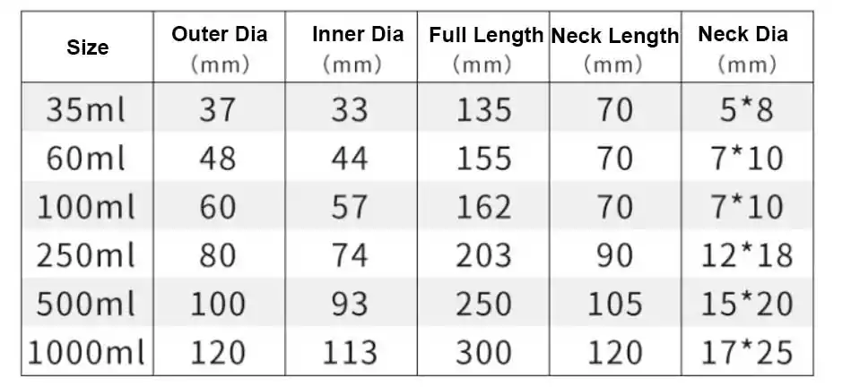 Funnel Capacity:30ml/60ml/100ml/250ml/500ml/1000ml;